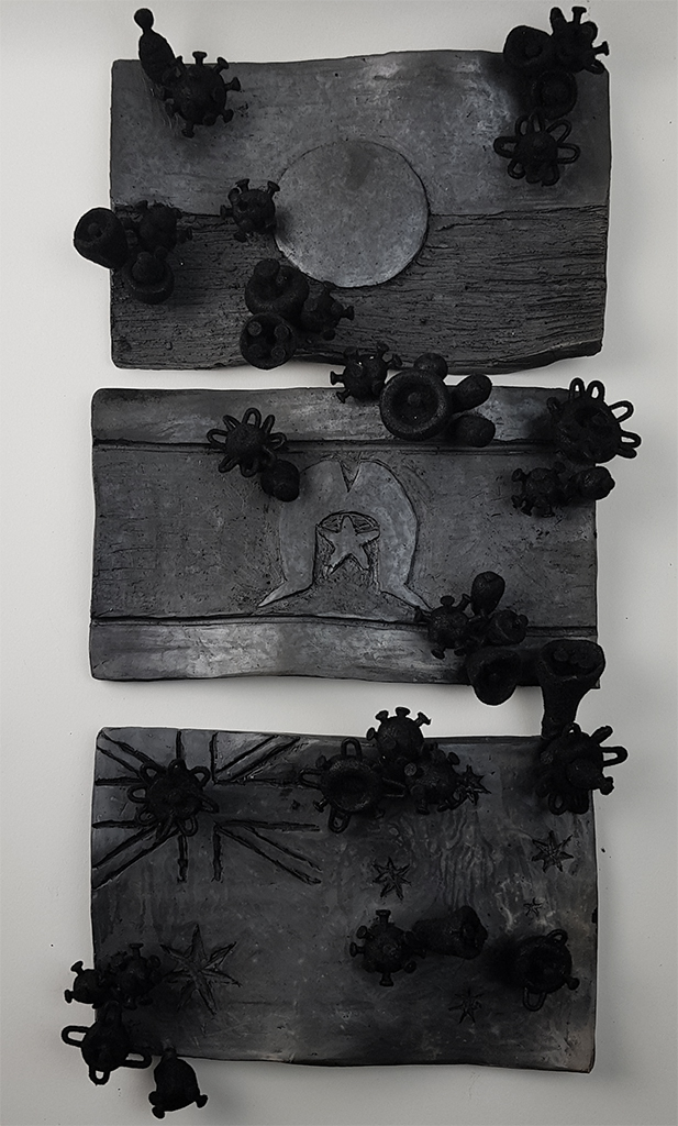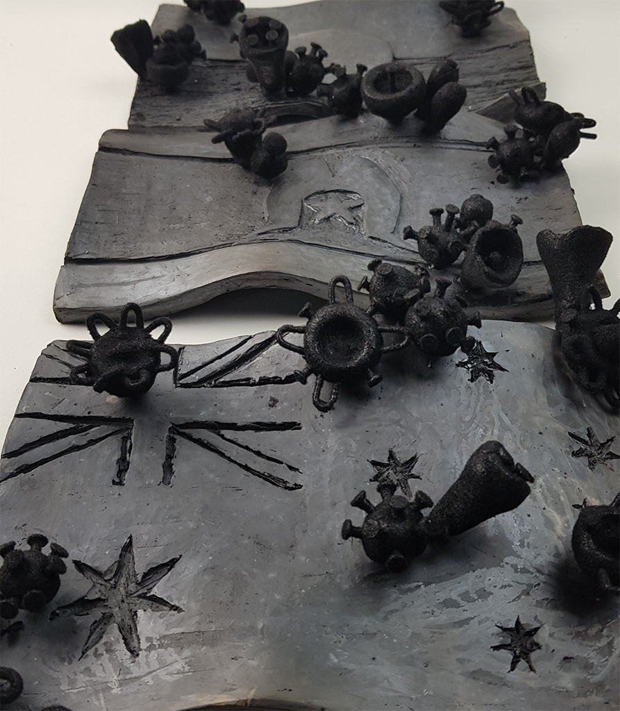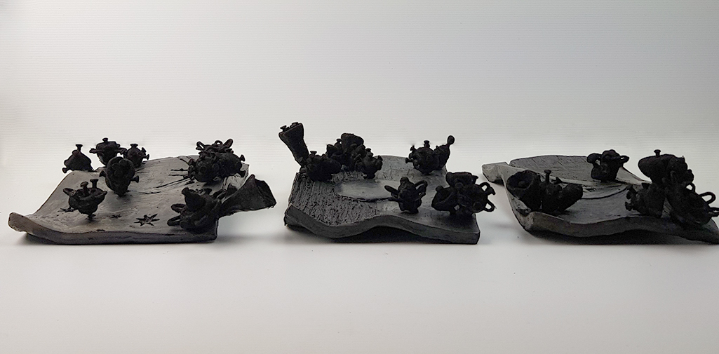 Burnt then contagious: ceramic and mixed media sculpture